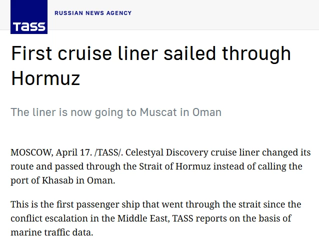 2. 甚至包括一艘邮轮,这是美以伊冲突爆发以来,第一艘通过海峡的客轮。