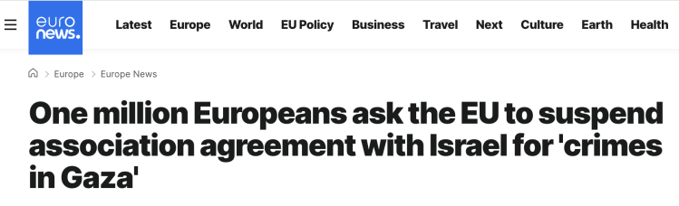 这次压力可不是单纯来自政客,更多的是底下老百姓推上来的。欧洲新闻台披露了一个关键数据:短短三个月,一份声援巴勒斯坦的**书,在欧盟 27 个成员国里直接拿下了超过 100 万份签名。这种规模的民意动员,在欧洲政治生态里分量极重。面对这么大规模的公众**,欧盟外长们想要回避这个问题,难度可不是一般的大。