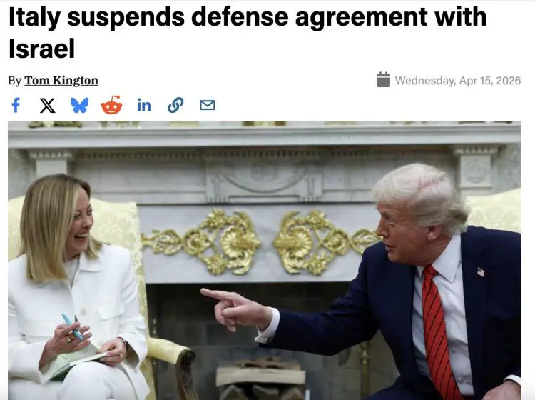 2. 意大利总理梅洛尼也没闲着,宣布已决定暂停自动续签与以色列的防务协议。这可是实打实的防务合作,暂停续签意味着双方在军事层面的互信和合作要踩一脚刹车。