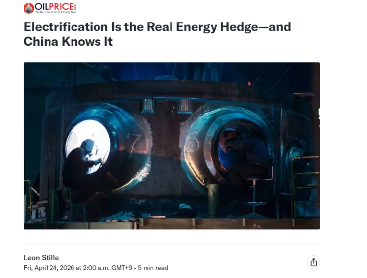 面对相同的境遇,文章认为中国走了条完全不同的路。中国没有无休止地应对化石燃料价格的波动,而是选择稳步降低石油在其能源结构中的比重。这才是中国在电气化领域进行巨额投资的真正意义所在,不仅仅是为了环保,更是为了能源安全。