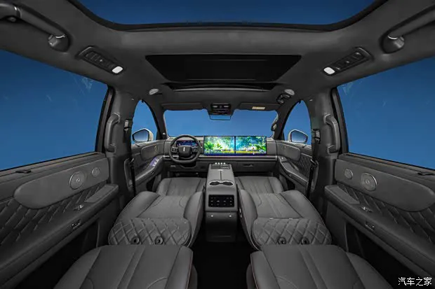 2. 中控与副驾采用双 17.3 英寸双联屏设计,视觉冲击力极强,娱乐导航互不干扰。