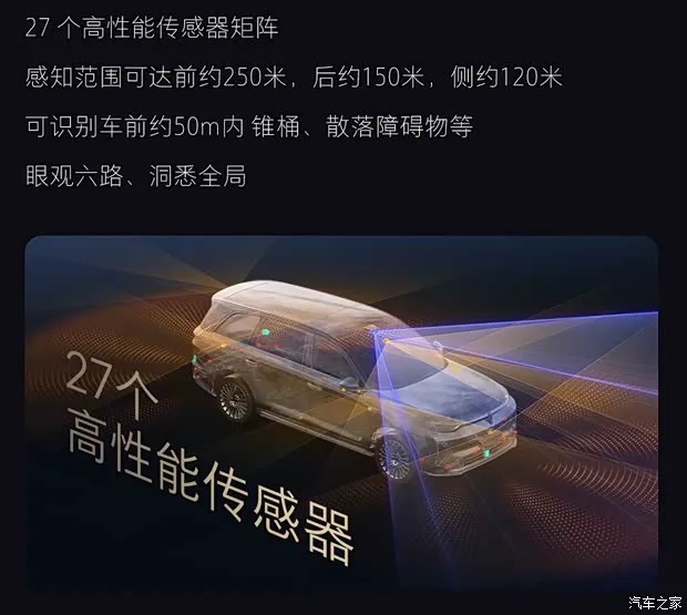 1. 全车一共搭载了27 个高性能传感器,这就好比给车装上了全天候的“鹰眼”,不管是白天黑夜,还是复杂路况,都能看得清清楚楚,感知精度大幅提升。