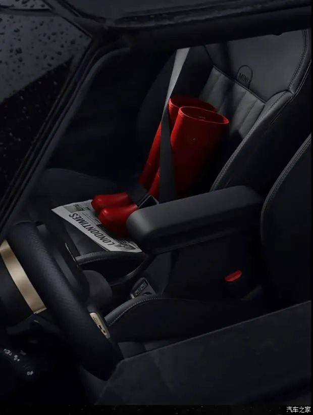 不过,如果全身都黑,难免会显得有些压抑。所以有趣的是,轮圈部分依然保留了经典的镀铬样式。这一抹亮色与车身的深沉黑色形成了强烈的视觉对比,既打破了单调,又保留了 MINI 品牌骨子里的那种复古与精致,可以说是整套外观设计里的神来之笔,兼顾了个性与经典。