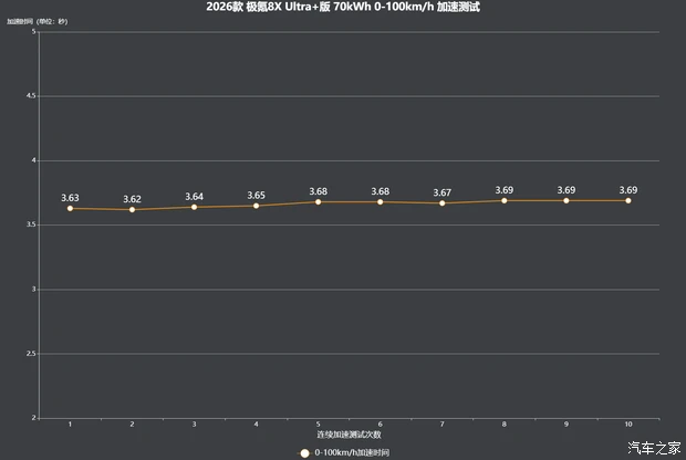 很多人担心电动车后段乏力,但这台车完全打破了这种刻板印象。中后段的再加速能力依旧迅猛,具体数据表现相当亮眼,这也是检验一台性能车真实实力的关键指标: