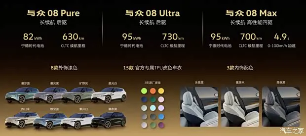 今天的配置速览希望能给您的选车之路提供一些参考。如果想了解更多关于与众 08 的新车详细信息,可以查阅相关文章《德系纯电 SUV 新标杆?售价 22.99 万元起 大众安徽与众 08 正式上市》,那里有更全面的解读。