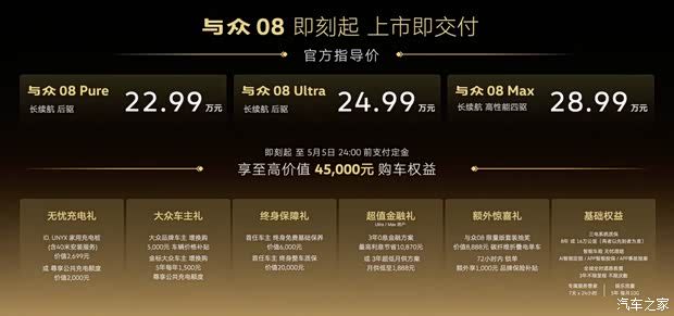 大众安徽与众 08 正式上市:22.99 万起,全域 800V 如何选?