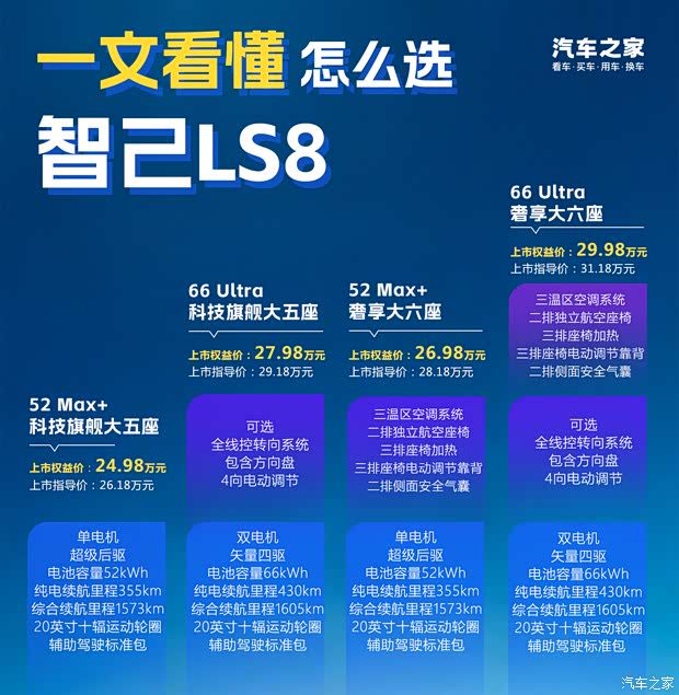 接下来,我们就一次性讲透这 4 款车型该怎么选,助你精准锁定最适合的那一台智己 LS8。