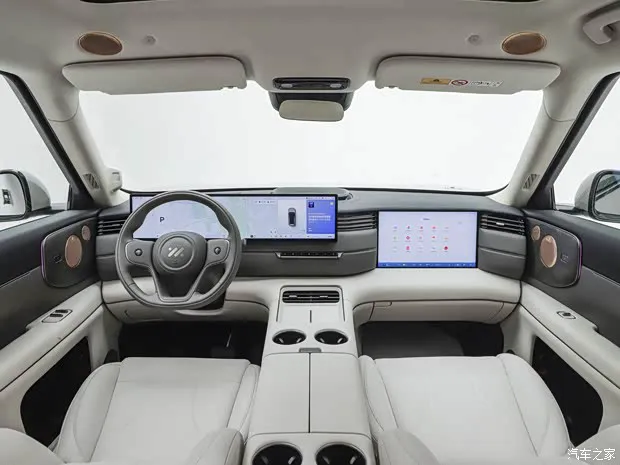 来到车内,智己 LS8 采用的环抱式座舱设计不仅仅是一个视觉概念,更通过大面积的软包材质覆盖,营造出了极强的温馨感和豪华感。这种设计语言非常懂家庭用户,既要看着高级,摸着也要舒服,完全符合主流家庭用户的审美需求。