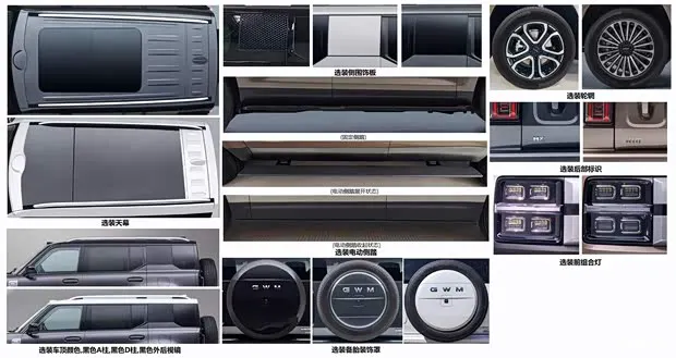咱们先来聊聊这台车的外观设计,这次厂家显然是想让用户玩出点不一样的风格。根据目前曝光的消息,这款车在多样化选装方面做得相当到位。你可以自由选择不同尺寸的天幕,车身支持双色搭配,甚至连车顶都能单独选配白色。此外,像前组合灯、备胎装饰罩以及电动侧踏这些细节,也都提供了丰富的 customization 空间。