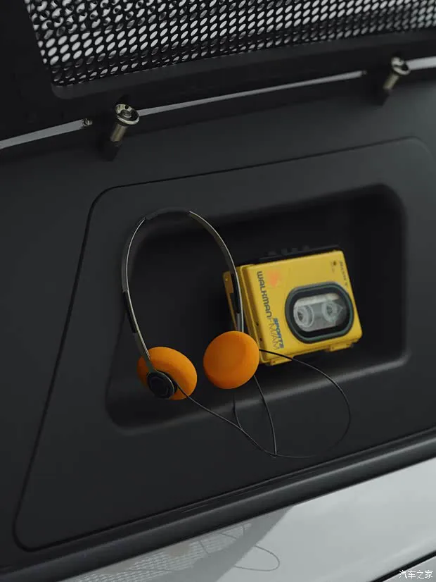 更有意思的是另一侧车窗,设计师居然嵌入了一台复古随身听。这种新旧科技的碰撞,瞬间拉满了故事感。一边是顶级的高保真音响系统,一边是充满怀旧气息的磁带机,这种反差萌,恰恰体现了改装文化的精髓。