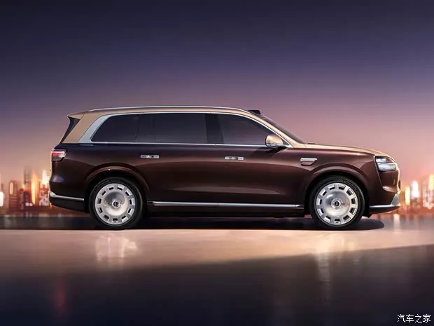 来到侧面,新车配备了半隐藏式门把手。这里有个重点,预计它将采用尊界 S800 同款的星光设计。什么意思呢?就是解锁时自带光影仪式感,这种交互体验在同级别中是非常领先的。不仅如此,半隐藏式设计还能有效降低风阻,对于这么大体量的 SUV 来说,每一分风阻的降低都意味着能耗的优化。这种设计既照顾了空气动力学,又提升了整车的精致度,算是实用与美观的完美结合。