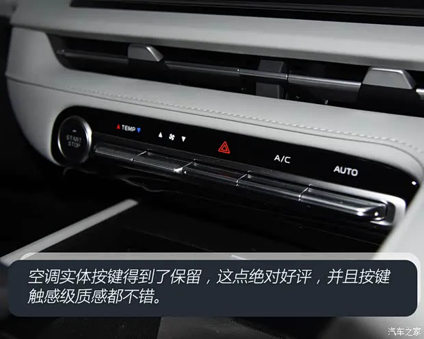 在中控台通道区域,设计师巧妙地安置了空调出风口。但更值得一提的是,这里保留了完整的物理空间控制面板与功能按键。