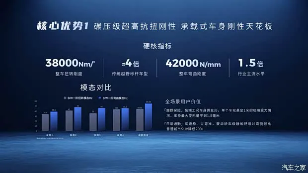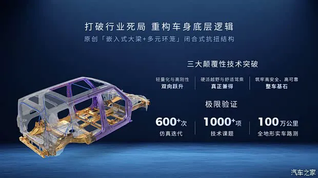 简单来说,就是在保证舒适性的基础上,赋予了车身更高的强度。最终推出的是一款带有高刚性的承载式车身,既解决了烂路焦虑,又兼顾了日常经济性,真正实现了全场景的覆盖。