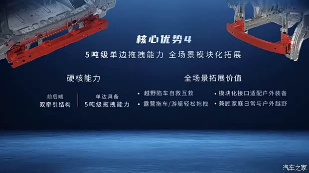 最后说说实用性,这车配备了5 吨级原厂拖拽资质,加上模块化拓展能力,玩法非常多。无论是在越野陷车时实现自救互救,还是支持多种户外装备加装,它都能搞定。真正实现了一台车即可适配全场景生活,无论是日常代步还是硬核探险,都能无缝切换。