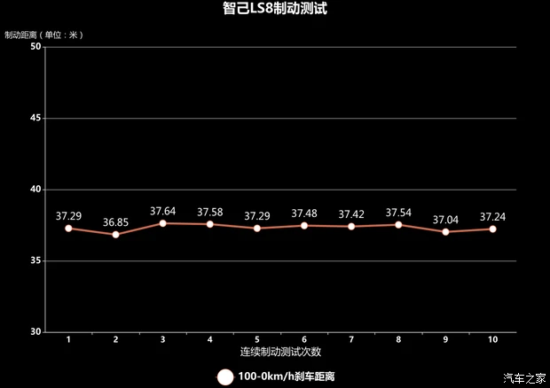 咱们先来聊聊制动性能,这可是衡量一辆车安全底线的关键指标。在连续的 10 次制动测试中,智己 LS8 交出了一份相当亮眼的成绩单。