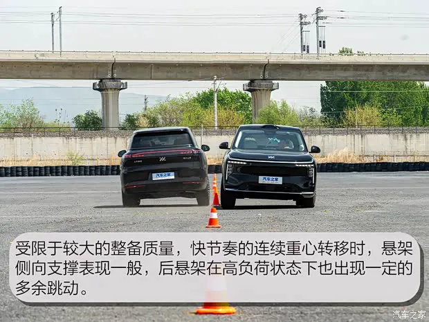 但毕竟是台大车,较大的整备质量成了双刃剑。在进行快节奏的连续重心转移时,你能明显感觉到悬架的侧向支撑有些吃力,表现只能说一般。特别是在后悬架高负荷状态下,出现了一些多余的跳动,不够干脆,这让底盘的厚重感打了折扣。受重量惯性和悬架动作的叠加影响,车辆到了绕桩后段,车身动态响应会显得稍慢一些,不够跟手,需要驾驶员预留更多的提前量。