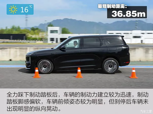 数据显示,其最短制动距离出现在第二次测试,仅为 36.85 米;而最长的制动距离发生在第三次,为 37.64 米。