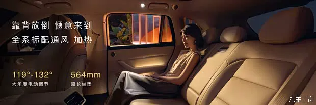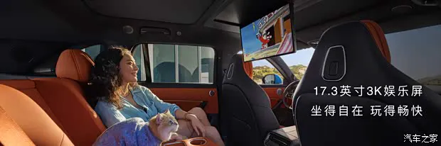 后排才是这台车真正的亮点所在,座椅靠背支持119°-132°电动调节,这个角度范围基本能找到最适合你的半躺姿态。再加上加热和通风功能,冬夏皆宜。为了方便商务或家庭使用,官方还配备了小桌板和车载冷暖箱,细节满分。娱乐方面,一块17.3 英寸吸顶屏直接让后排变成了私人影院。