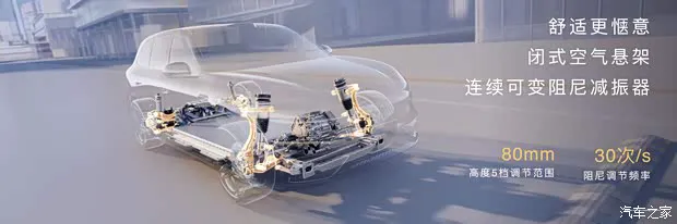 底盘方面,直接上了闭式单腔空悬搭配 CDC 电磁减振器。这套组合拳打出来,最直接的好处就是能提前预瞄路面。