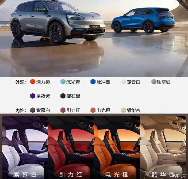在颜值即正义的今天,车身颜色的选择直接关系到车主的个性表达。问界 M6 在这方面提供了丰富的选择,共计7 种可选配色,涵盖了多种风格: