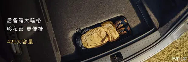 当然,一款优秀的家用车型,不仅要好看,更要好用。在储物空间的规划上,这款车展现了极高的实用性智慧。除了常规的后备厢布局,工程师还额外挖掘出了42L 的隐藏式储物格,为随车物品提供了更私密的安放之所,这点在同级车型中并不多见。