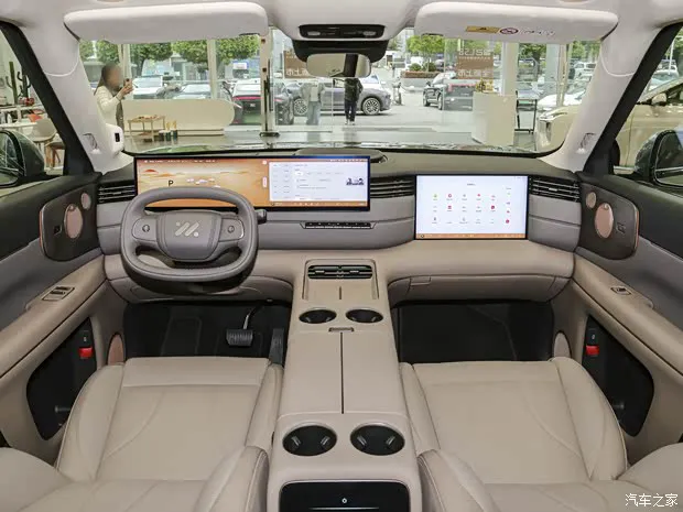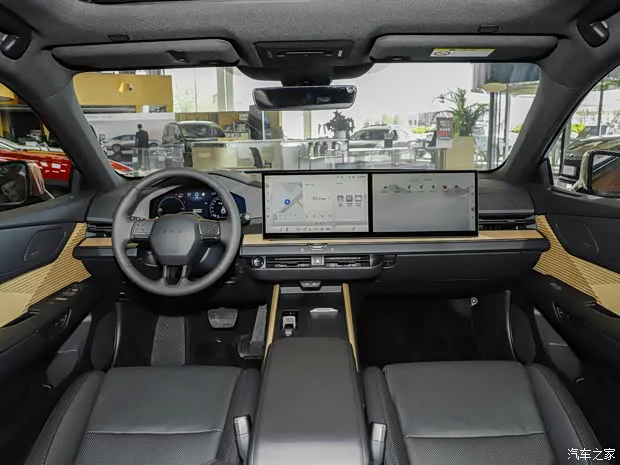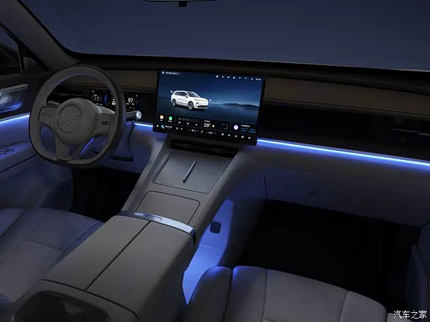 坐进车内,你会发现新车的整体设计语言非常熟悉,它延续了吉利银河 M9 的核心布局。中控台上最吸睛的莫过于12.66 英寸全液晶仪表与 30 英寸贯穿式多媒体触控屏的组合,这套大屏组合不仅科技感拉满,实际操作起来也是相当便捷,符合当下主流的高端定位。