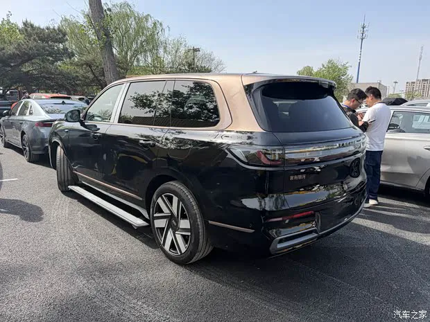 除了漆面,轮圈也是重头戏。该车配备了21 英寸大尺寸轮圈,而且轮圈中心盖也同步换装为金色标识。这一步棋走得很妙,进一步呼应了整车的黑金设计主题,强化高端气场,让侧面线条更加饱满。