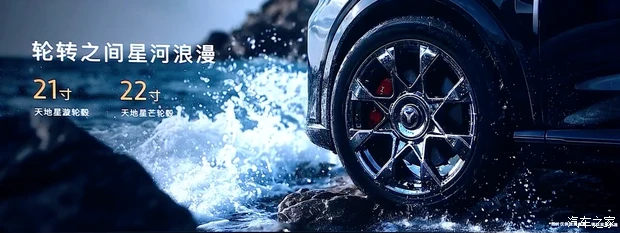 轮圈配置上,新车提供了21/22 英寸多种样式运动轮圈,大尺寸轮毂与硬朗腰线的搭配,让整车侧面看起来运动气息十足,强化了整车的运动属性。