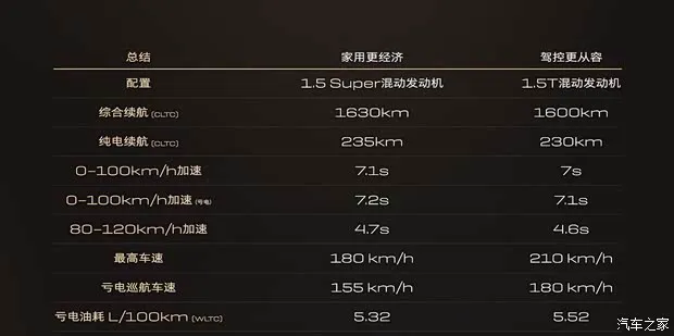 - 续航领先:1630km 的综合续航在同级别插混车型中属于第一梯队。