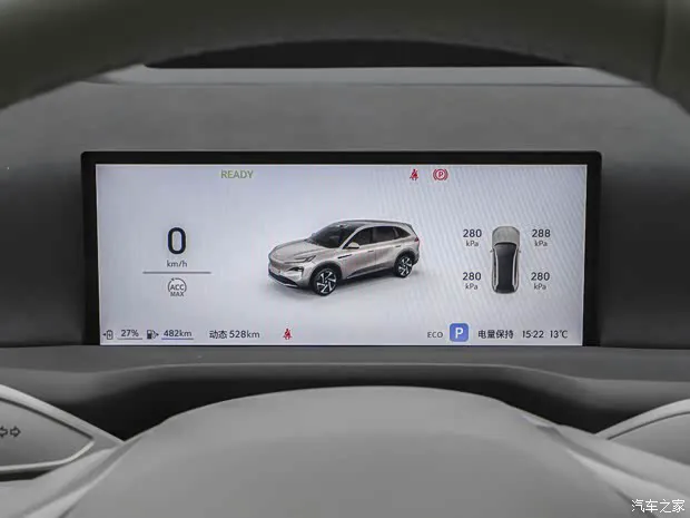 首先是高性能版本,配备了一台 1.5T 混动专属发动机,这台发动机本身就能迸发出115kW 的最大功率和 230N·m 的最大扭矩。再加上最大功率为165kW 的电机,整个系统的综合功率直接达到了280kW。这意味着什么呢?简单来说,就是动力储备非常厚实,加速超车底气十足。