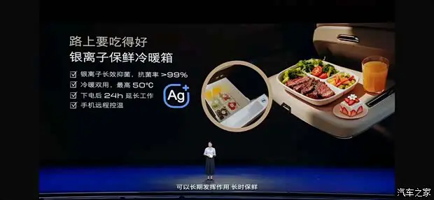 旅途中想吃点喝点的?车内配备的银离子保鲜冷暖箱支持2–50℃宽域调温。不管是冰镇饮料还是加热母婴食品,都能轻松搞定,而且银离子技术还能确保存储环境的健康卫生,这点对于注重生活品质的人来说非常关键。