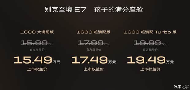 4 月 22 日,就在北京车展开幕的前夕,别克至境 E7 正式宣告上市,这场发布会可以说是为即将到来的车展盛宴提前点燃了一把火。新车一共推出了 3 款配置车型,官方指导价定在 15.99 万元到 19.99 万元之间,而如果你关注上市权益,实际入手价格就更香了,权益价区间下探至 15.49 万元到 19.49 万元。这款车也会在随后的北京车展期间正式与公众见面,对于关注合资品牌新能源化的朋友来说,绝对是个值得留意的信号。