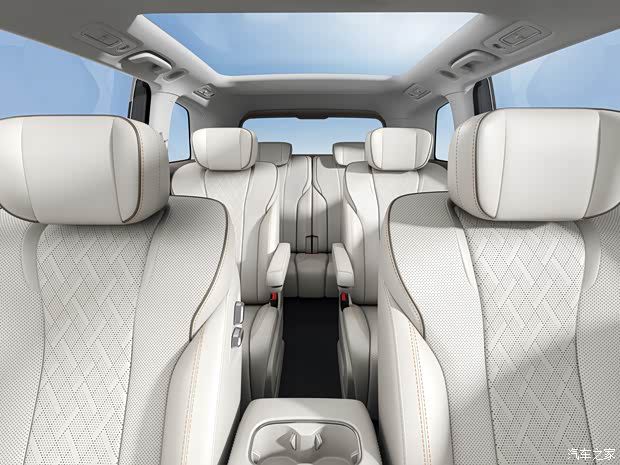 车内座椅采用了2+2+2 六座布局,这种布局重点在于保证每一位乘客的独立空间与舒适度,非常适合家庭出行或商务接待。