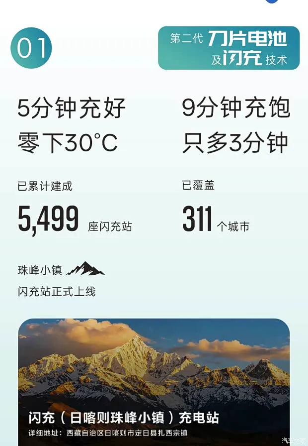 首先聊聊大家最关心的充电问题。解决里程焦虑的关键,不仅仅在于电池容量,更在于补能的便捷性。截至目前,已累计建成 5499 座闪充电站,这一规模效应正在逐步显现。更重要的是,这些站点并非集中在少数一线城市,而是覆盖了 311 个城市,这意味着无论是主流都市还是下沉市场,用户都能享受到高效的补能服务。这种高密度的网络布局,实质上是在为用户的日常出行编织一张安全网,让电动车的使用体验无限接近甚至超越燃油车。