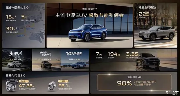 这里需要特别纠正一个常见的认知偏差。在吉利银河的官方产品序列中,并没有一款名为“银河 M7"的车型。这很可能是车友将问界 M7与吉利银河 L7的名称发生了混淆,或者是对 L7 某些特定营销版本(如远航版)的误读。