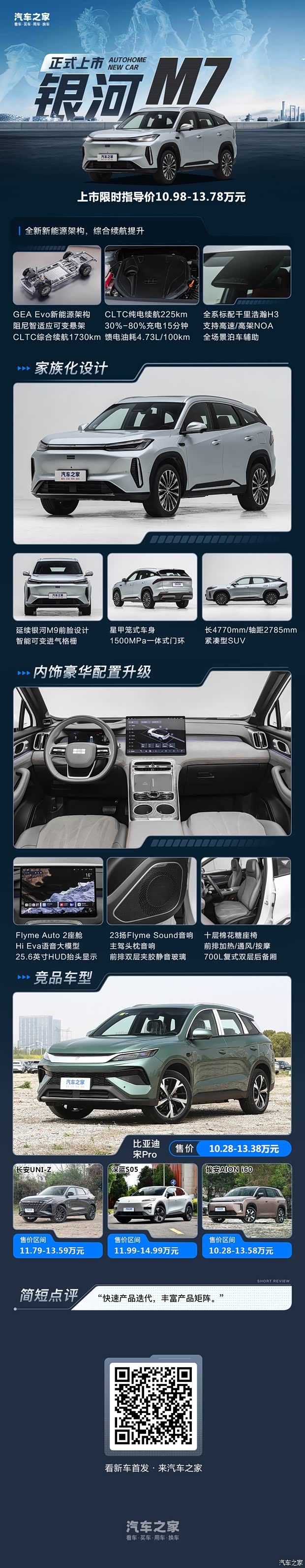 2. 如果你更在意整车空间利用率、动力驾驶质感以及快速补能体验,那么银河 M7 远航家凭借神盾金砖电池带来的综合效能,值得列入首选清单。