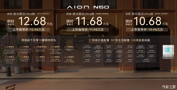 1. 410 激光雷达 Ultra 版:指导价 10.98 万元,限时焕新价10.68 万元。
