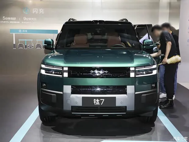 咱们再来仔细瞧瞧这台方程豹钛 7 EV 闪充版,第一眼给人的感觉就是硬朗且粗犷。它依旧延续了家族式的钛能前脸设计语言,这种风格可不是随便做做的,而是真正能把那种硬派越野的气质给立住。对于喜欢户外风格的朋友来说,这种设计一眼就能认出,辨识度相当高。