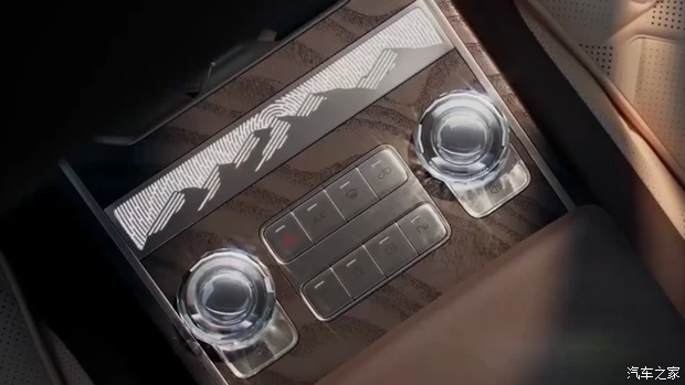 再来看细节质感,这次内饰里大量融入了山水样式的装饰元素,尤其是在座椅和音响罩这些显眼的位置。这种将传统文化符号现代化的手法,确实能提升车内的艺术气息。另外,中央扶手区域还配备了一个水晶旋钮,在光线下折射的效果很不错,进一步强化了内饰的豪华质感。