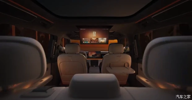 视线转到后排,配置上也没落下,大尺寸娱乐屏以及小桌板的出现,说明这台车很注重后排乘客的体验,无论是孩子看动画片还是临时办公,都能照顾得到。