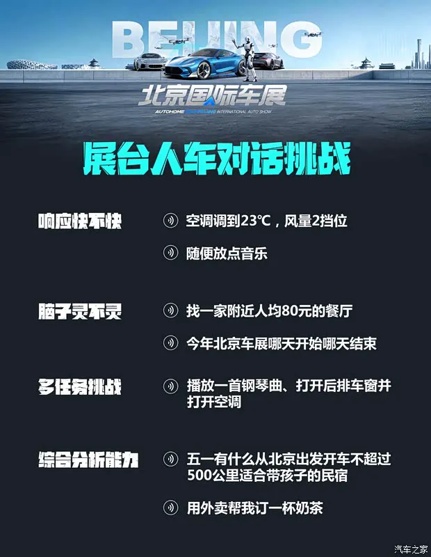 这次北京车展我们准备了几个小问题,来考验一下它们的语音助手表现如何。我们将重点聚焦于以下几个核心维度: