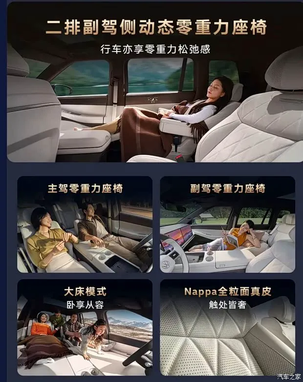 • 副驾专门配备了伊姆斯零重力躺椅,躺平休息不再是奢望。