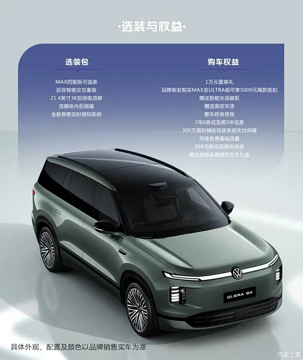 • 入手门槛:对于现金流敏感或者希望降低月供压力的用户来说,这个政策能大大减轻购车负担,让这台 ID.ERA 9X 的入手门槛变得更低。
