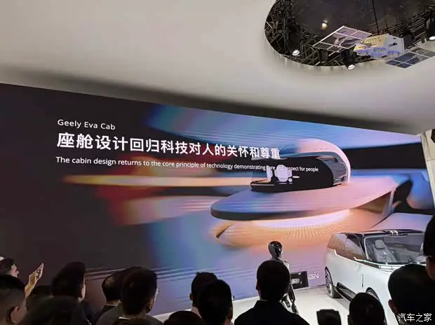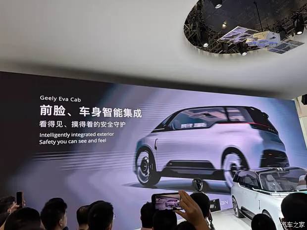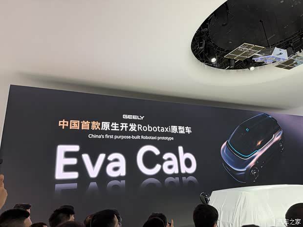 全场最吸睛的亮点,莫过于吉利首发了中国首台原生 Robotaxi 原型车,并正式公布定名为Eva Cab。大家要注意“原生”这两个字,这可不是拿现有车型改装的无人驾驶车,而是从设计之初就是为了自动驾驶而生。这种原生架构通常意味着更高的空间利用率、更合理的传感器布局以及更符合无人运营场景的内饰设计。Eva Cab 的出现,标志着吉利在共享出行和自动驾驶商业化领域,已经走在了行业前列。
