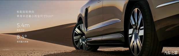 再者是后轮转向,单向最大角度达到8.4°,这让整车的转弯半径缩小到了5.4m,开起来就像小车一样灵活。