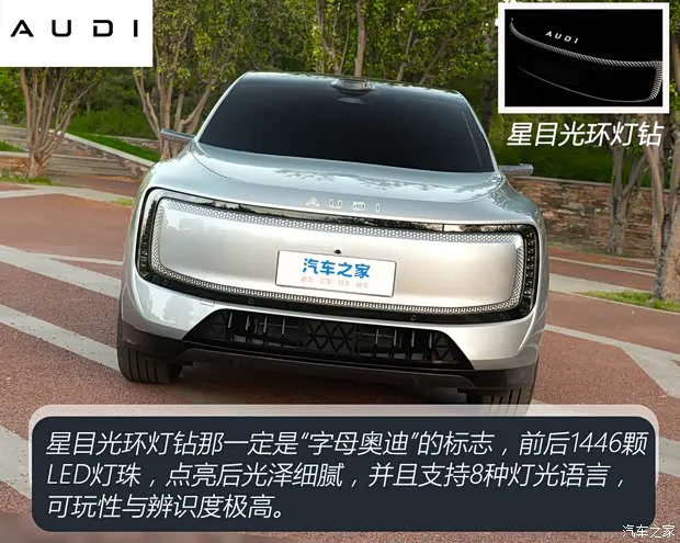 • 可点亮字母标:配合可以点亮的 AUDI 字母标,具有极高的辨识度,夜间行车简直就是移动的广告牌。