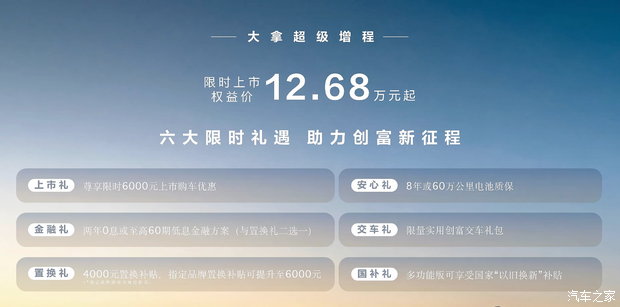 说到大家最关心的价格,这次确实挺有诚意。新车官方售价13.68 万起,但如果你赶上限时权益,到手价最低只要12.68 万起。这个价格区间,对于一款搭载大容量电池的增程车型来说,竞争力还是相当不错的,可以说是把性价比直接拉满了。