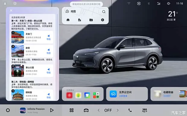 影视资源扩充:爱奇艺上线了“云影院”专区,热门影片同步更新,让等待充电或休息的时间不再枯燥,座舱瞬间变身私人影院。