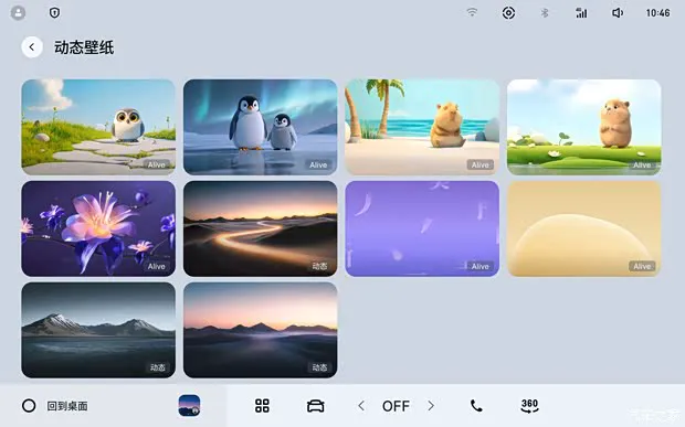 这次系统一次性新增了 10 款 Alive 动态壁纸,覆盖面相当广,不管是喜欢萌宠的、爱看生长花的,还是对车姿感兴趣的,都能找到适合自己的主题。但这可不是单纯的屏保,它支持点击互动与能量可视化。这意味着什么?意味着你不再是被动地看一张图,而是能通过屏幕直观地看到车辆状态,兼顾了美观与实用性,让等待也变得有趣。