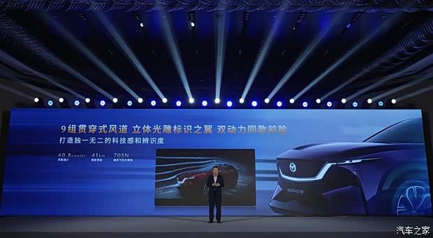 咱们先聊聊这台 EZ-60 给人的第一印象。从外观来看,它可是妥妥地继承了马自达家族的设计理念。不管你是关注纯电版本还是增程版本,这两款动力车型在前脸造型上基本保持了一致,均采用了封闭式设计。这种设计手法不仅符合当下新能源车的潮流趋势,更关键的是,它为整车营造出了相当凌厉的视觉冲击力,让人一眼就能认出它的血脉。